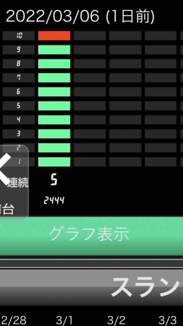 2日続けて前日は1000回転でも、出ない台も、有り、ホントに、えげつない、一台爆破連チャン月に1回しても、絶対分かり辛いグラフで、後の台は、単発ばかり回転数356回転が単発で続き、一日終わる、負けに行くようなもの土日も怖い
